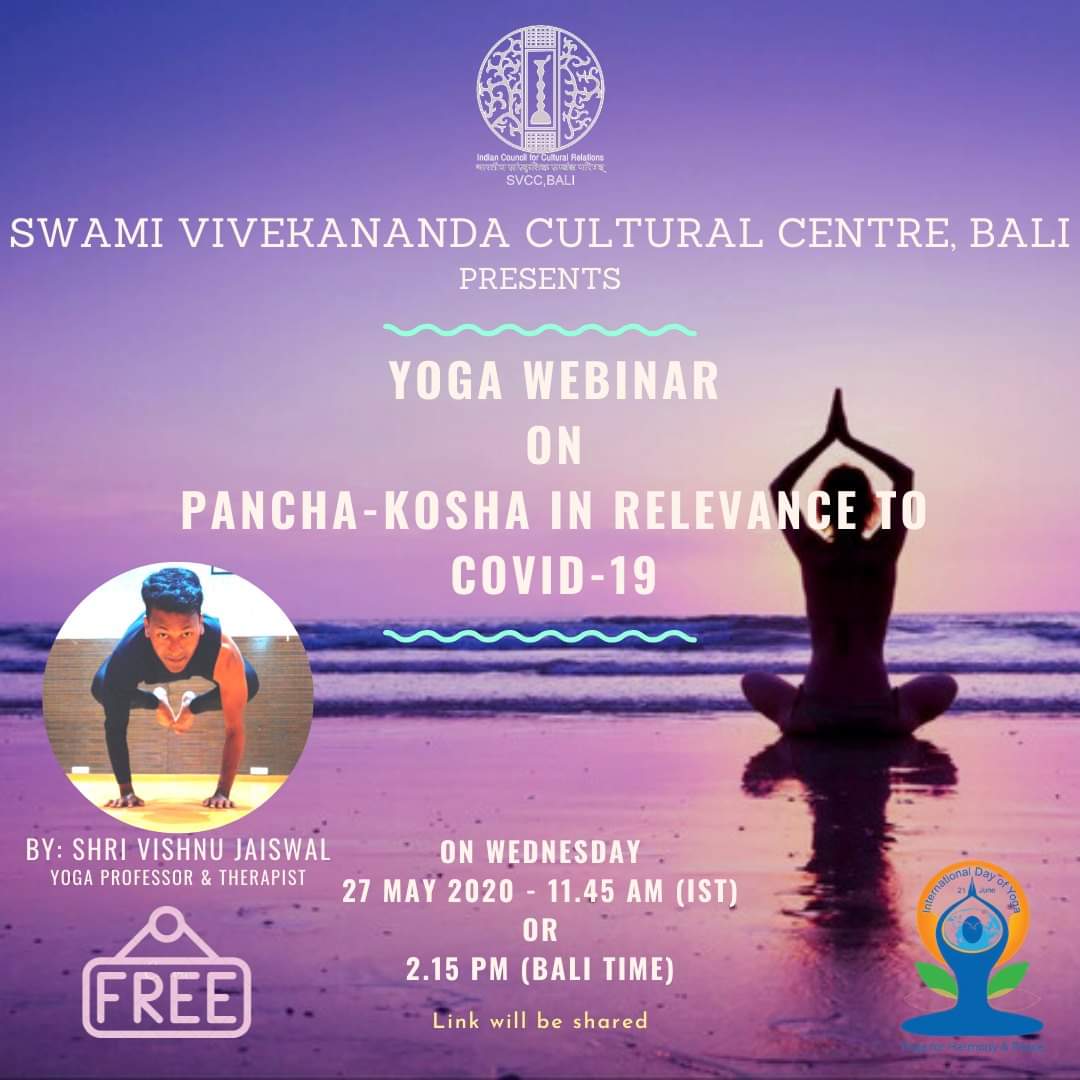 Mr. Vishnu Jaiswal, an alumnus of Bharatiya Sanskriti Peetham, and presently a member of Visiting Faculty, conducted a Yoga Webinar on 'Pancha Kosha in relevance to Covid-19' on request of Director of Swami Vivekananda Cultural Centre, Bali, Indonesia.